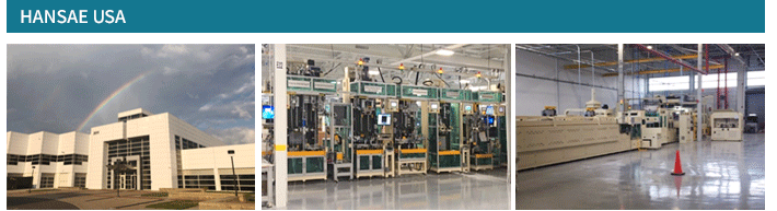 | HANSAE USA is located in Michigan, USA with a 156,992 SF plant. It is also equipped leading Halfshaft Assembly lines, Shaft Machining and high tech testing tools. |
